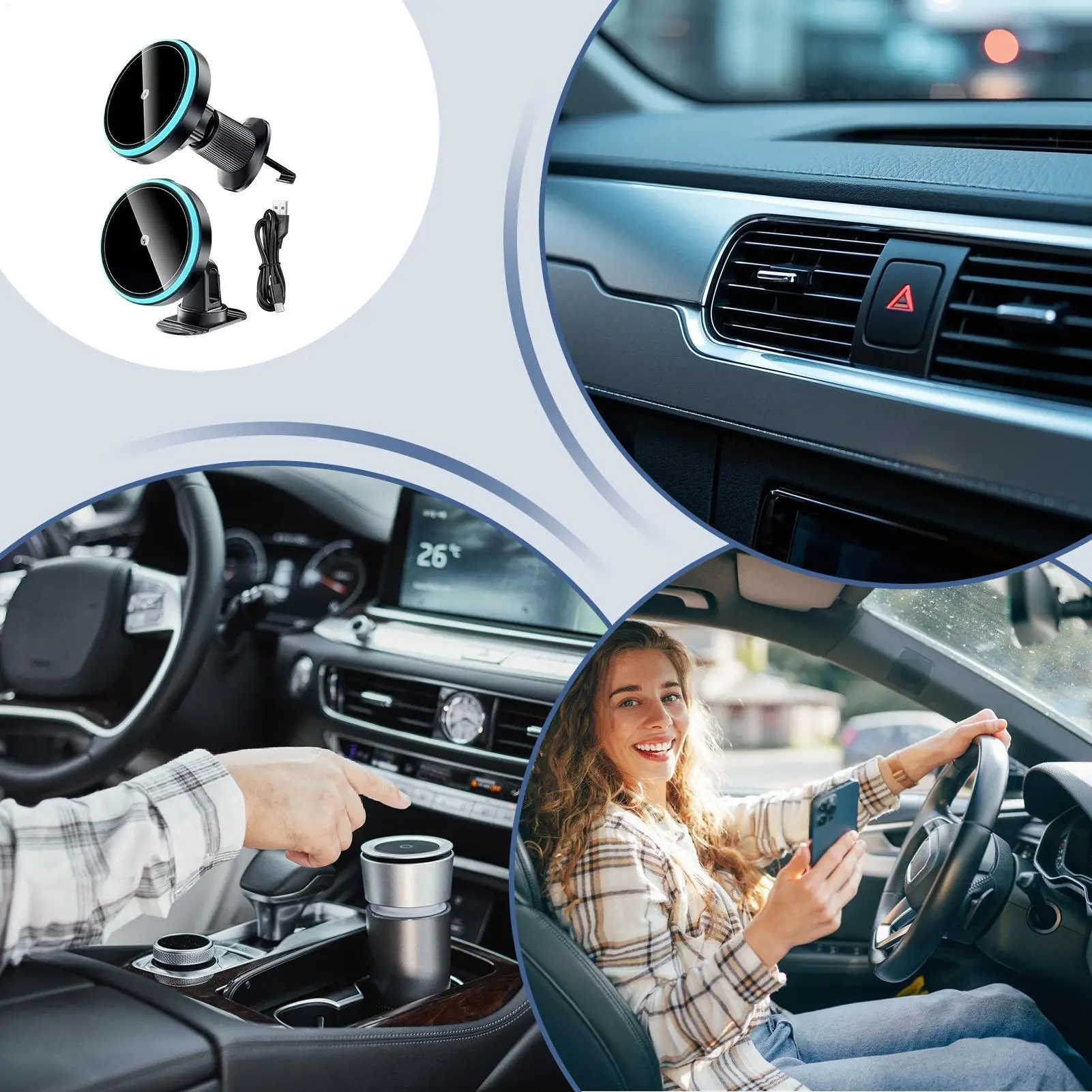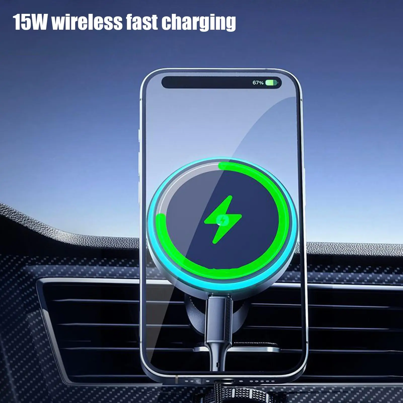 Car Wireless Charger Magnetic Car Phone Holder 15W Magnetic Fast Charging Device Wireless Charger Stand for Vehicle Truck