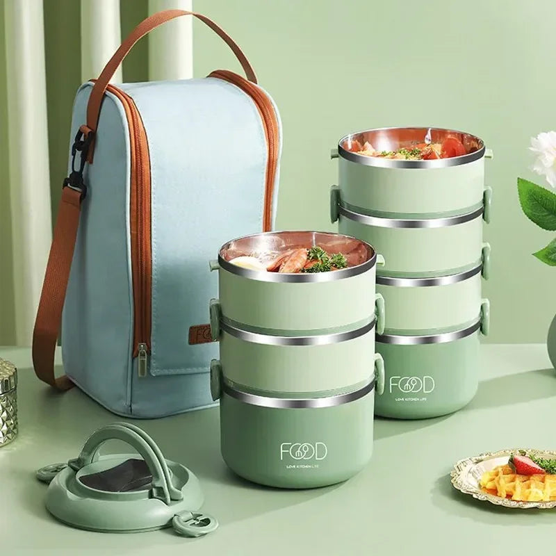 3/4Layer Portable Insulated Lunch Bucket Office Student Stainless Steel Lunch Box Microwave Oven Heating Large Capacity Bento Box